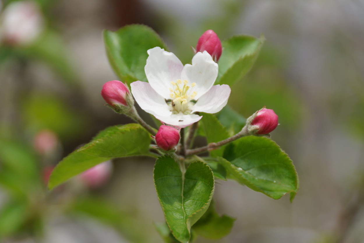 我が家の庭のリンゴの木にも花が咲いた。