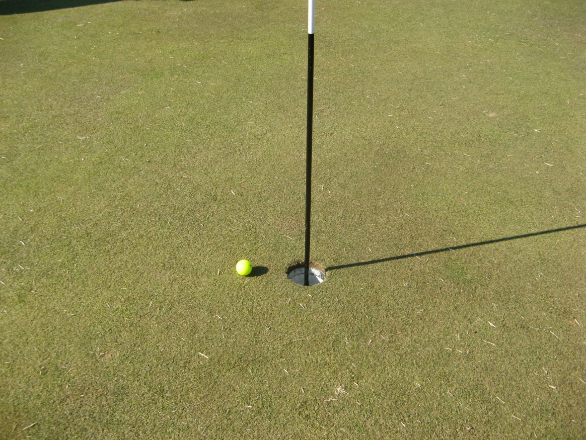 ピン手前10cmだった。もうひと転がりでホールインワンだ。惜しい。