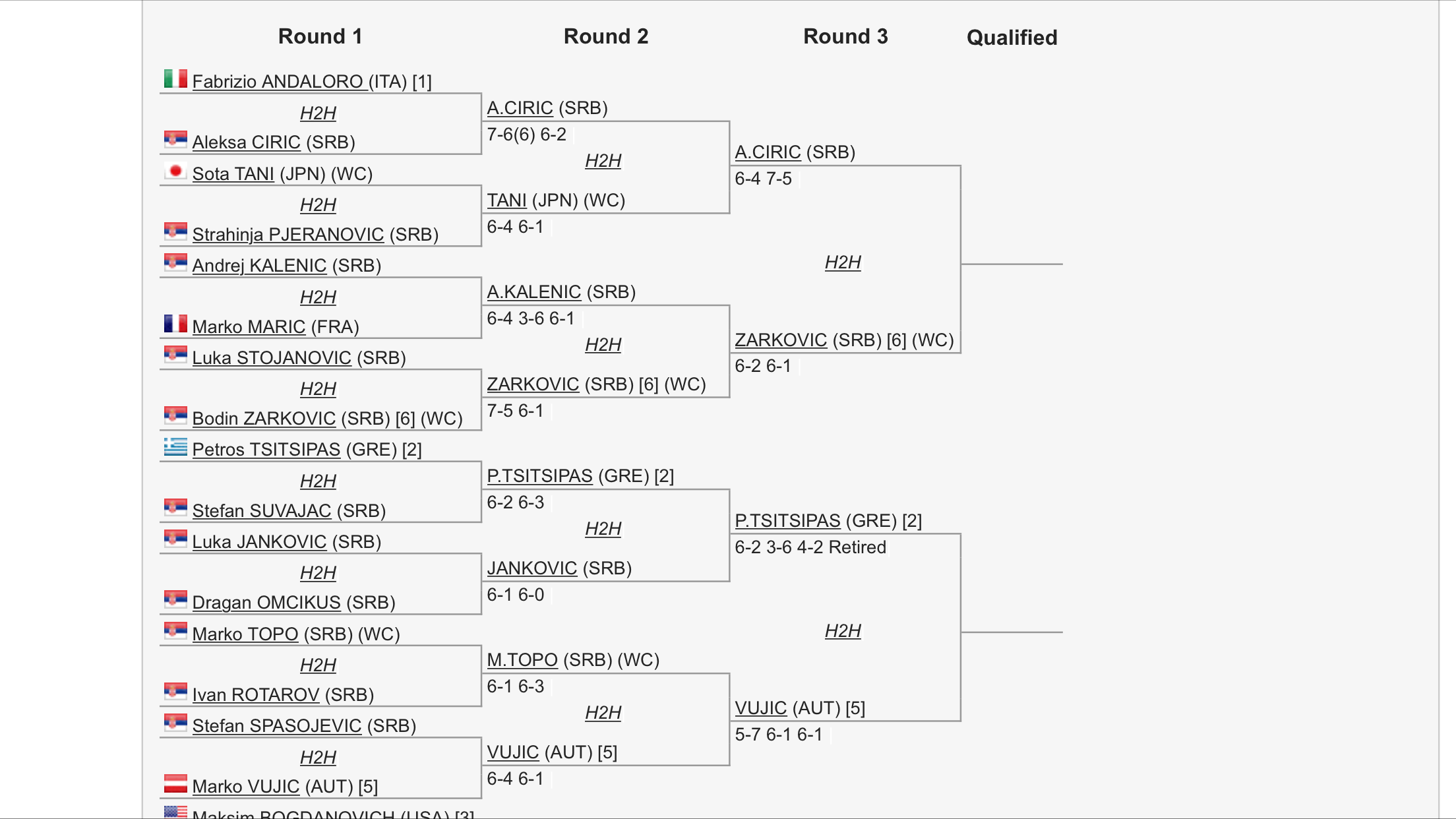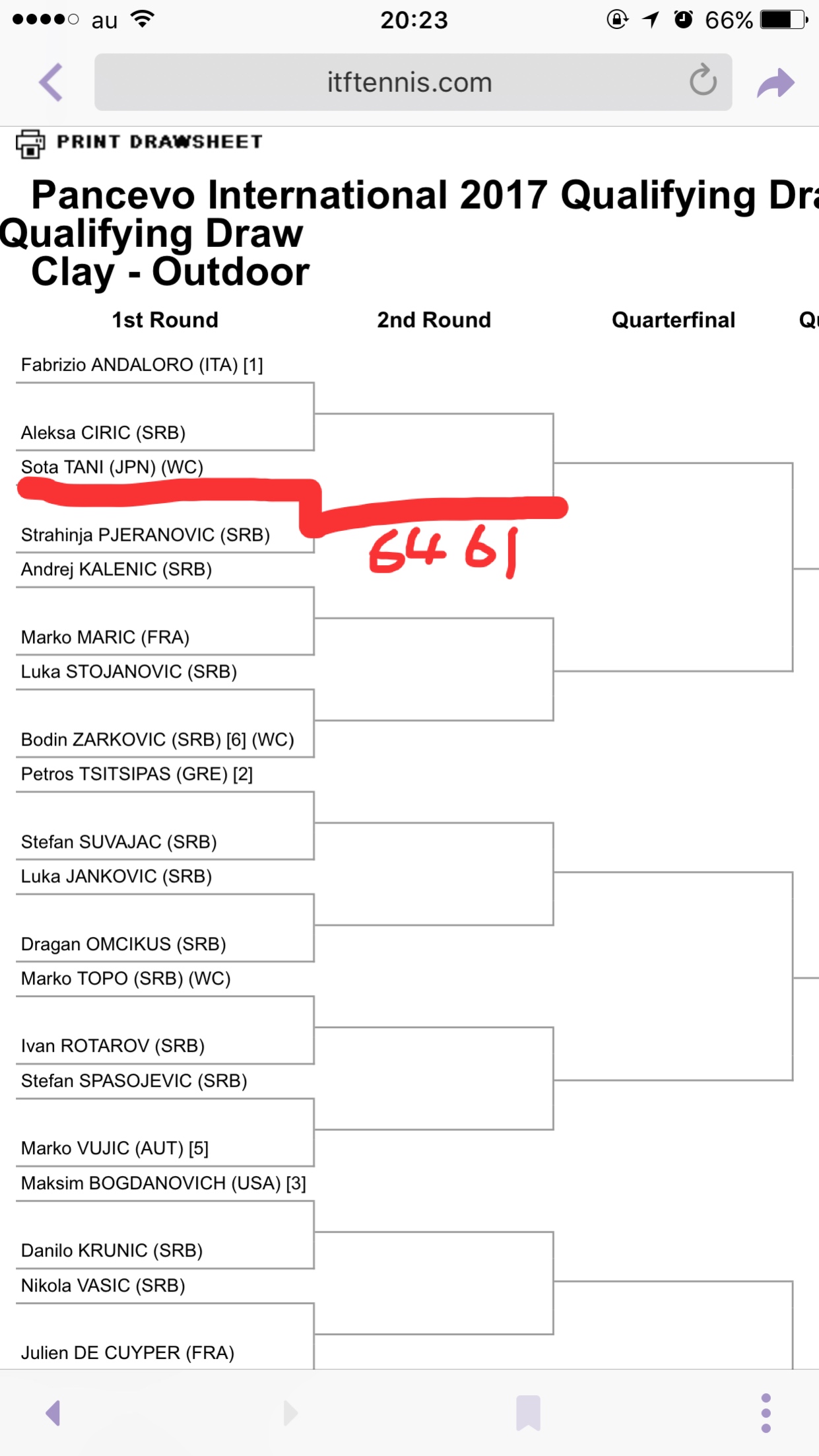 16歳以下の予選から出場して75 36 61、61 61で抜けました