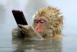 サルは温泉に浸かりながら、iPhone6sを楽しんでいます。