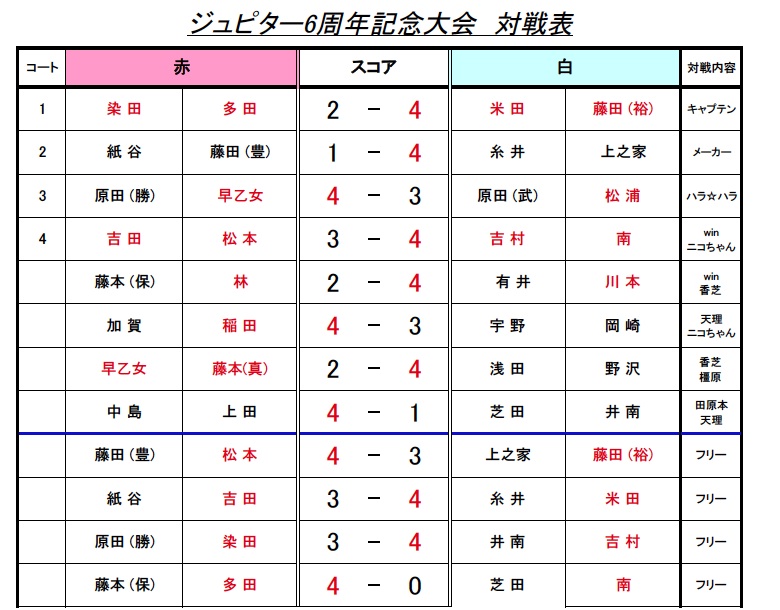 遠くからご参加下さった皆様、いつもホームコートでお世話になっているお馴染みの皆様♪お忙しい中 有難うございましたm(_ _)m