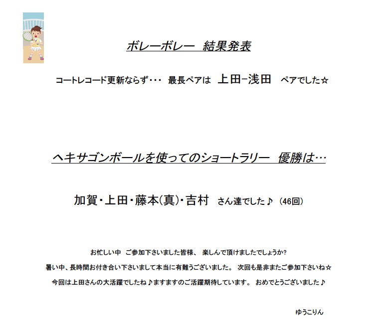 参加人数やイベント内容等 簡単な報告ですが(*^_^*) ここ数年…ボレーボレーが絶不調で(>_<)