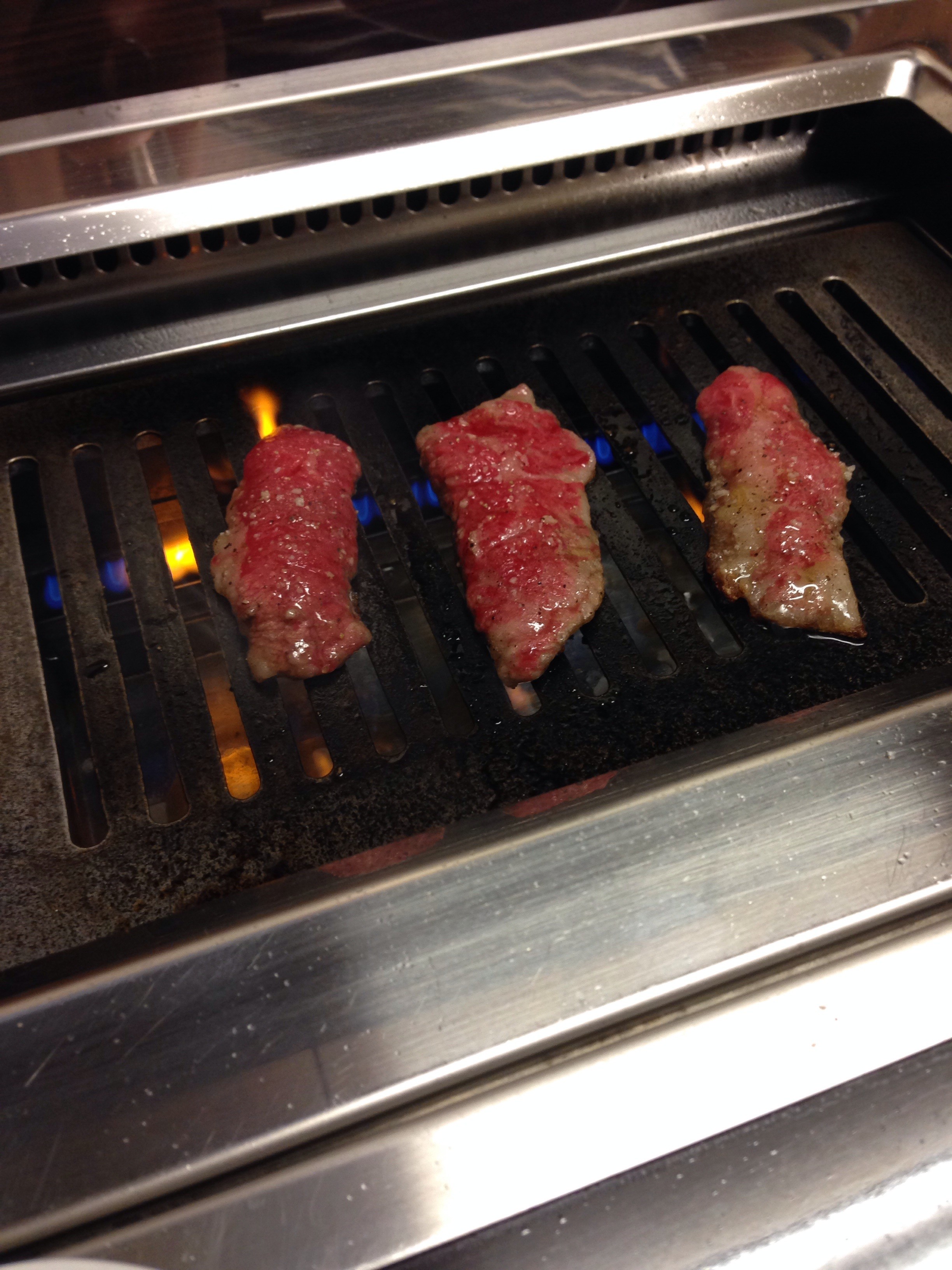 焼くと鉄板から炎が上がって危ない笑