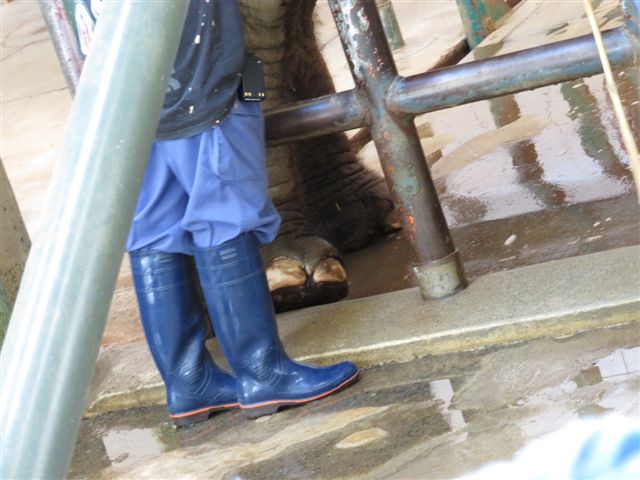 足を消毒していました。