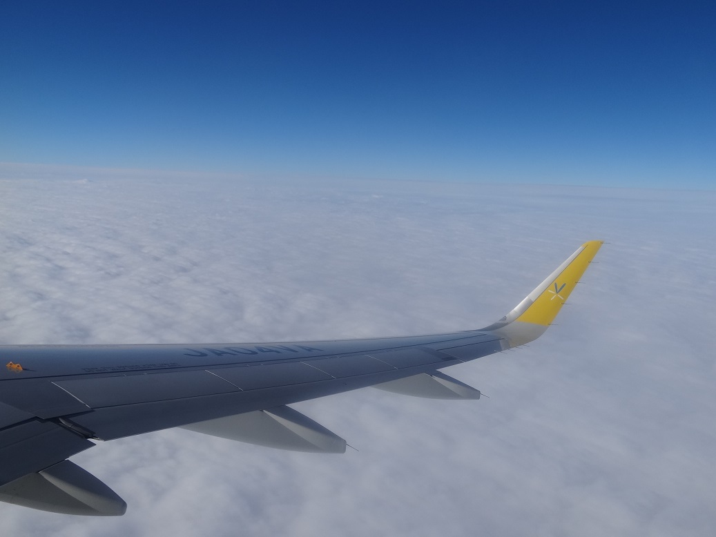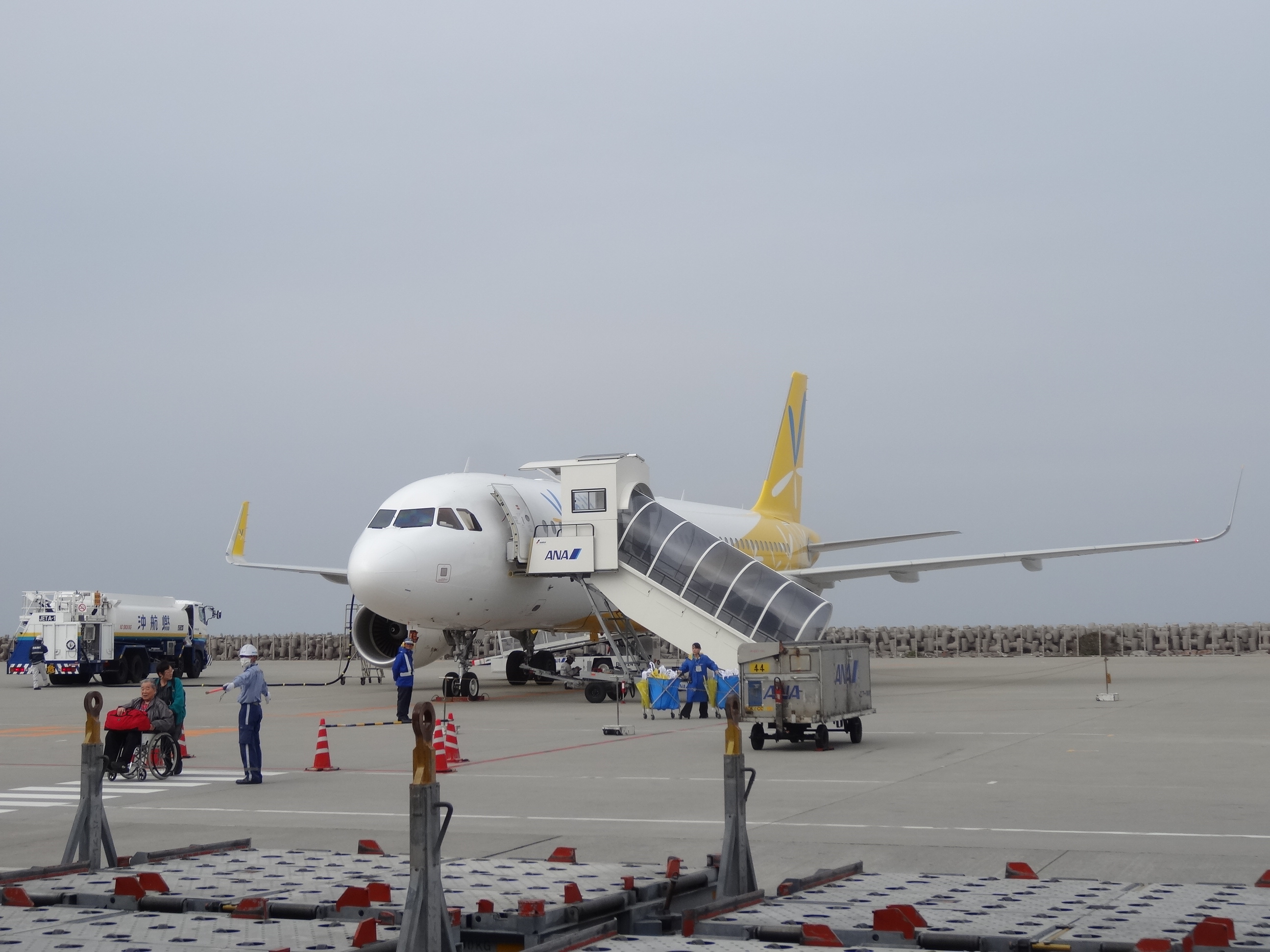 飛行機の乗り降りも、歩きでタラップ登ったり下りたり。