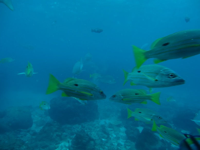らせん階段を下りていくと、丸い窓がたくさんあいていてそこから覗くときれいな魚がいっぱい!