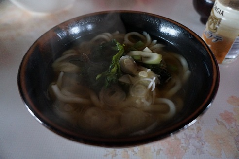 気を取り直して、金太郎小屋で山菜うどんをいただきました。