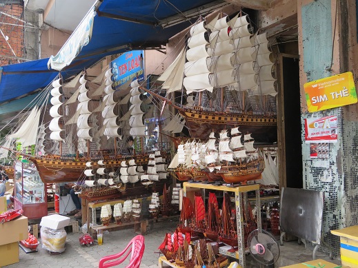 その市民劇場の脇の道を入ると、帆船の模型を売ってるお店が数件ならんでいます。