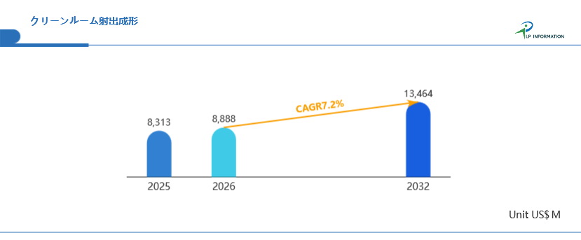 2026年3月、LP Information株式会社(所在地:東京都中央区)の最新調査レポート「世界クリーンルーム射出成形市場の成長予測2026~2032」は、過去の販売実績に基づいて2025年の世界全体のクリーンルーム射出成形販売状況を分析し、地域別及び市場セクター別に2025年から2032年までの販売予測を提供しています。同レポートは、地域、市場セクター、サブセクター別に分類されたクリーンルーム射出成形の売上を百万米ドル単位で詳細に分析しています。