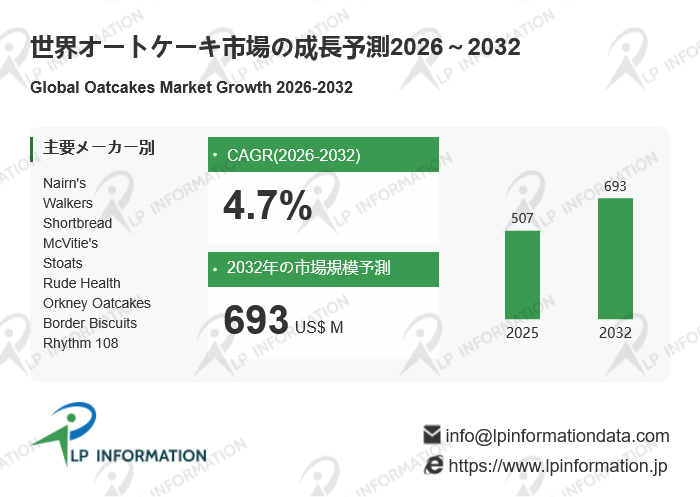 無料サンプルをご提供しており、関連リンクから直接お申し込み可能です:https://www.lpinformation.jp/reports/783544/oatcakes