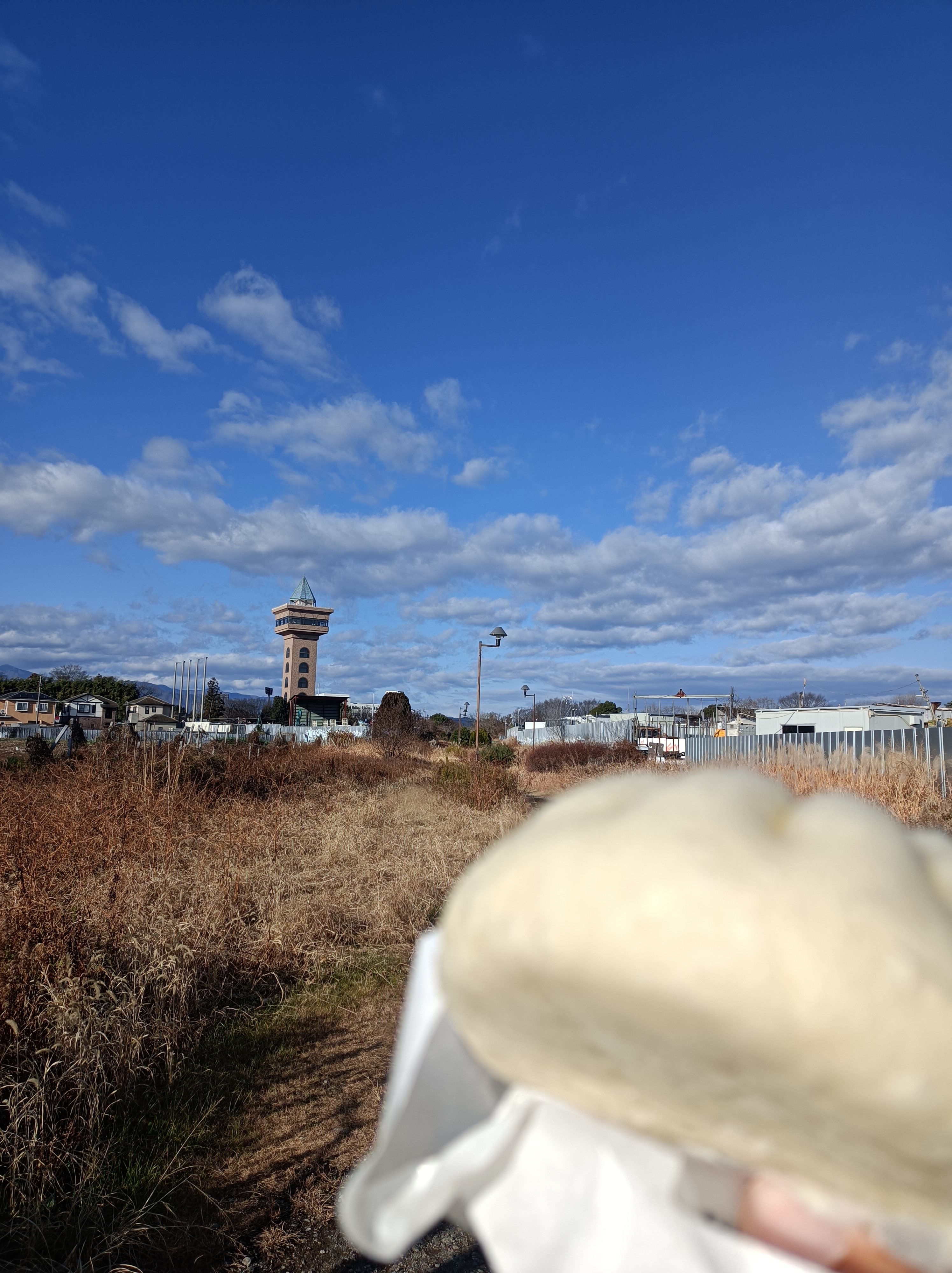 途中のコンビニで朝ごはん代わりの肉まんをゲットし、食べ歩きながら向かうは象徴的に建っているグリーンタワーのある相模原公園