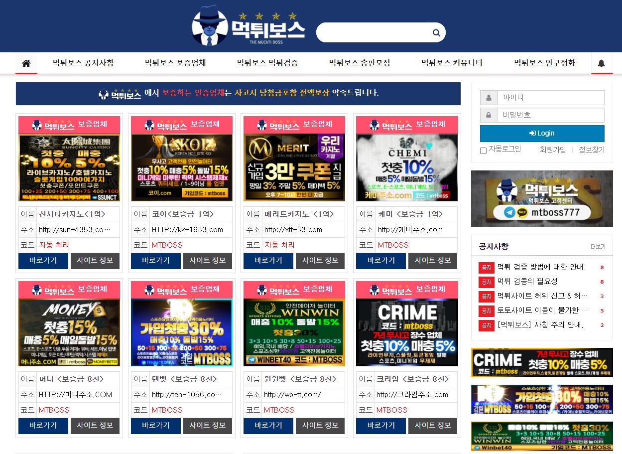 회원님 들께서 먹튀 사이트 구분을하는 게 어려울 수 있습니다. 그럴 때는 가장 좋은 방법 중 하나가 저희 먹튀 보스 같은 먹튀 검증 사이트에 문의를하는 것이 좋습니다. 저희 먹튀 보스는 토토 업계에서 회원님들이 개인적으로 알아보기 힘든 내용들을 전문적으로 확인하고 선별 할 수있는 기준과 기관들을 활용을합니다. 앞으로는 먹튀 검증을하실 때 저희 먹튀 보스에 직접 문의를 주시고 제공하는 먹튀 사이트 정보와 먹튀 검증이 완료된 신규 사이트들을 확인해 보시길 바랍니다.