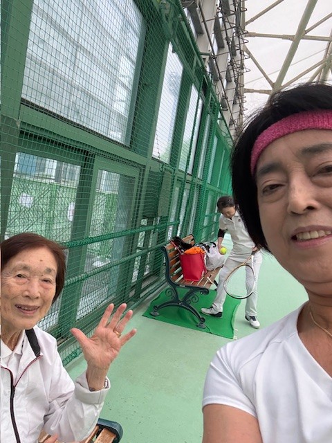 母と組んでのダブルスをやりました。 母が良いところでボレーを決めてくれて、何回か救われました。 私が相手にダブルスコートを走りまわされて「あー、もうダメだ…」というところで、ポンッ!と母がボレーを決めてくれるので私も可笑しくて、笑いが止まらなくなって次のポイントに影響してしまうこともあります。