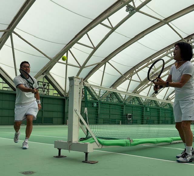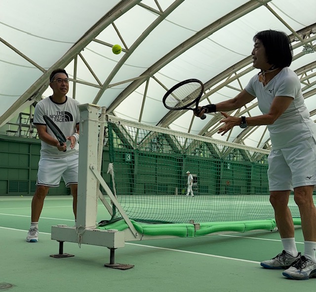 この暑さだから誰も来ていないと思いきや、テニスクラブにはたくさんの人が集まってきていました。
