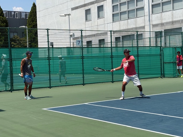 江原弘泰コーチ(現役プロ)は、8面のコートを、あっち行ったりこっち行ったりして各コートのそれぞれの練習メニューを指導してくれました。どんな頭をしているんだと、感心してしまいます。