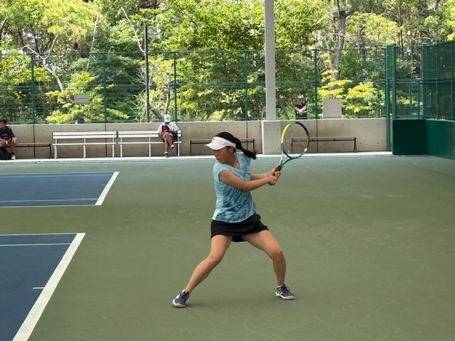 強い相手に対して、上手くトップスピンロブで逃げたり、エースを取ったり、なかなかの試合ぶりでした。 ファースト0-4から7-5で取り、 セカンドは4-0から追いつかれそうになって6-4で逃げ切りました。
