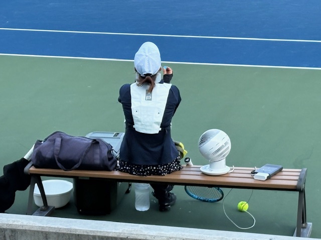 こちらは暑くて高校野球ではないですが、外のコートの試合は9時からの1ラウンドと15時以降になっています。室内コート8面は9時から始まっています。