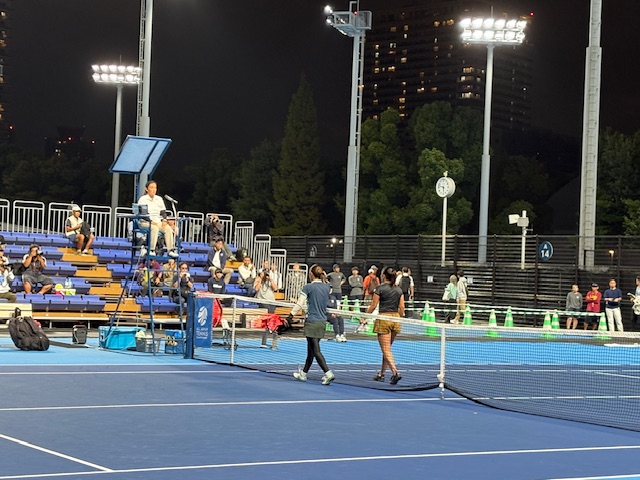 選手の中でも彼女は入念な裏側のコートで1人入念なウォームアップをして、そして試合が終わってからも必ずクールダウンをする。とてもとても立派な選手です。