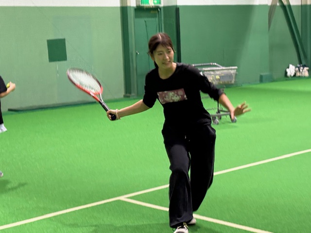 この日は、全日本テニス選手権で活躍した東京国際大学の星野桃花、大坪花がスタッフをやってくれました。 そして生徒たちと、沢山打ってくれました。 なかなかないチャンスですが、どのくらいそのありがたみがわかったか?(笑) 一応みんな一生懸命ボールを追いかけていました。佐藤直子