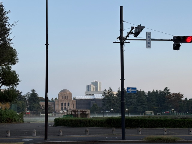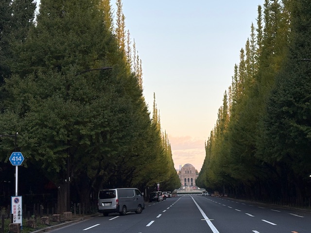 国立競技場、神宮球場、絵画館、銀杏並木の写真です。