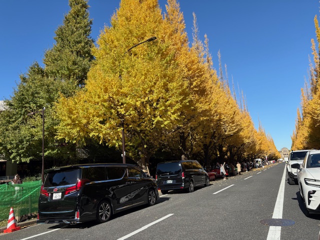 神宮の銀杏並木は、今が最高です。 車道に写真を撮ろうとする人々が出ているので、運転は気をつけなくてはなりません。