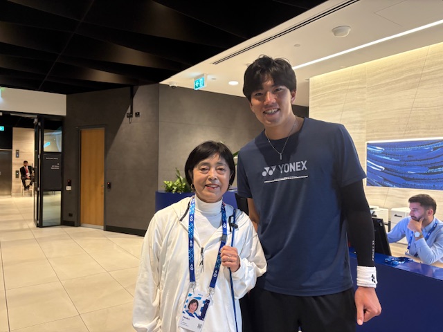 そこでなんと柚木選手に会いました。 彼は193cmの長身で、今ダブルスで世界ランキングが急上昇の日本期待の星です。