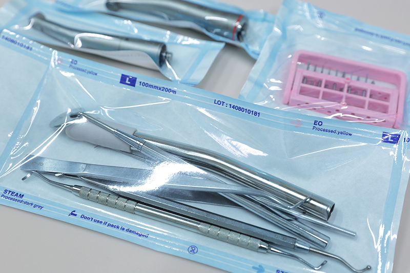 当歯科医院では、院内感染予防の徹底を行っております。一度使用した器具類は全て滅菌、消毒を行い、患者さんごとにパッケージングをして使用しております。