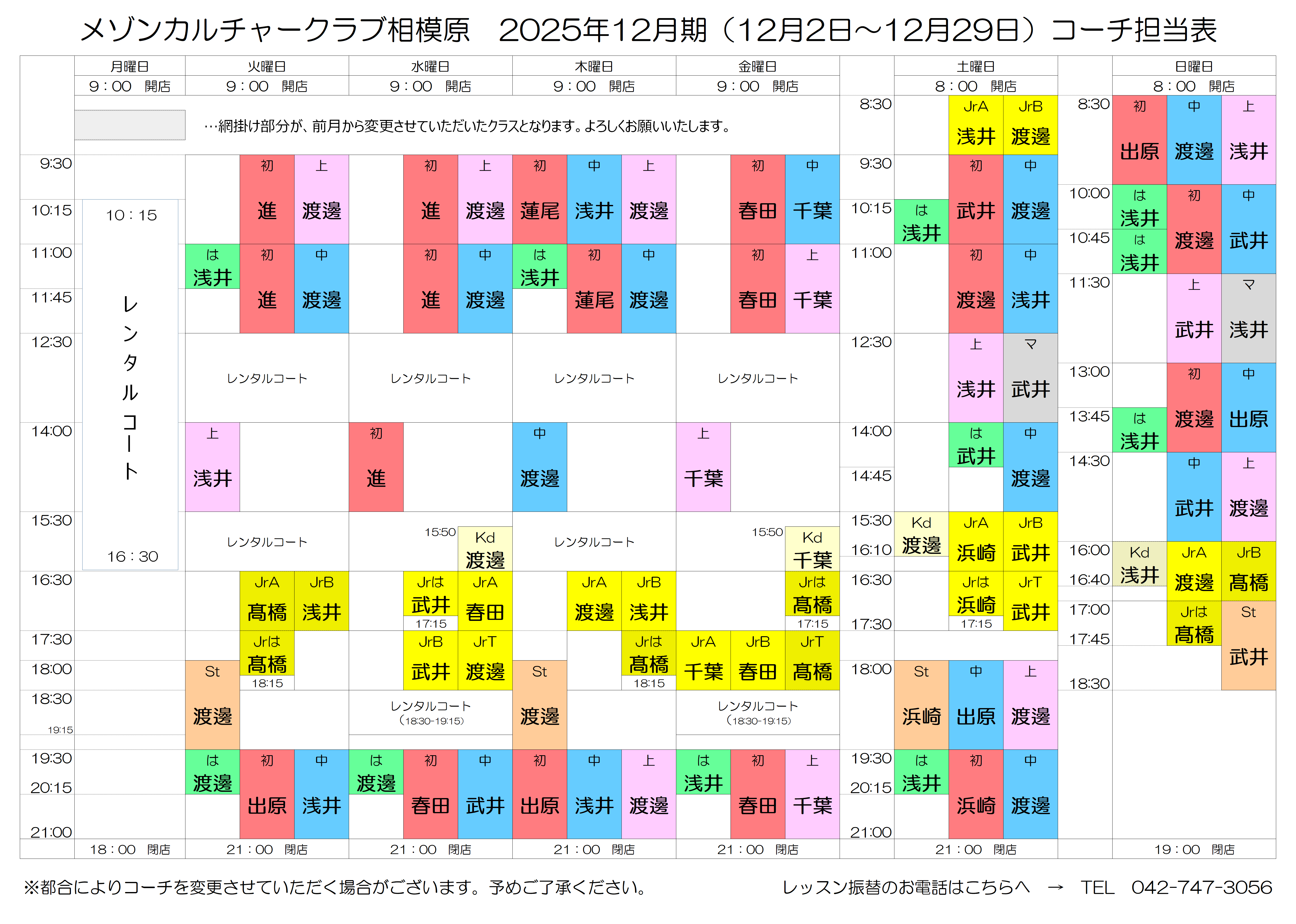 【最新のレッスン状況】はこちらをクリック!