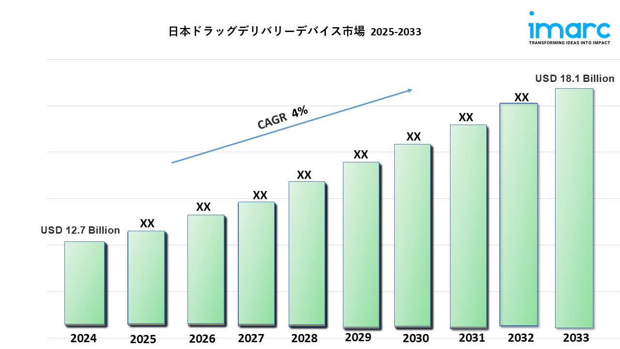 IMARCグループによると、日本のドラッグデリバリーデバイスの市場規模は2024年に127億米ドルに達しました。今後、IMARCグループは、2025年から2033年の間に4%の成長率(CAGR)を示し、2033年までに市場が181億米ドルに達すると予想しています。市場は、高度な医療技術、人口の高齢化、慢性疾患の有病率、およびイノベーションにより成長します。