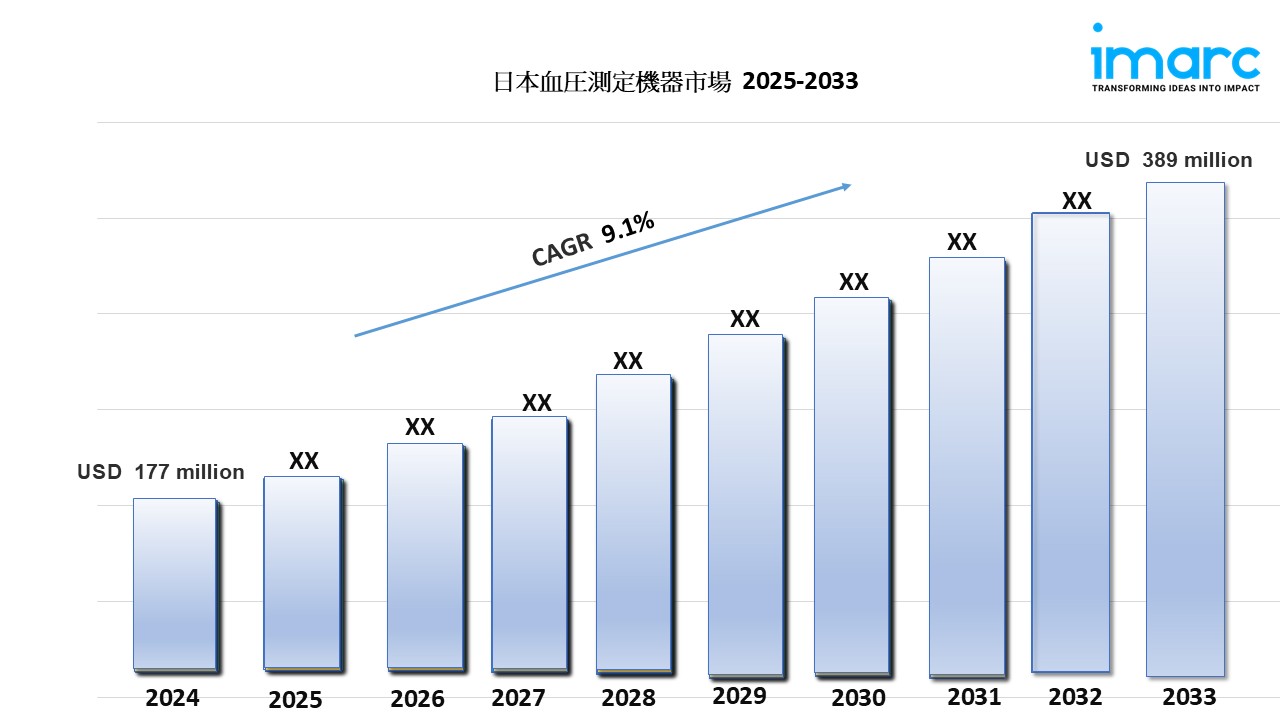 IMARCグループの最新レポートによると、日本の血圧測定器の市場規模は2024年に1億7700万米ドルに達しました。今後、IMARCグループは、2025年から2033年の間に年平均成長率(CAGR)9.1%で成長し、2033年までに市場が3億8,900万米ドルに達すると予想しています。