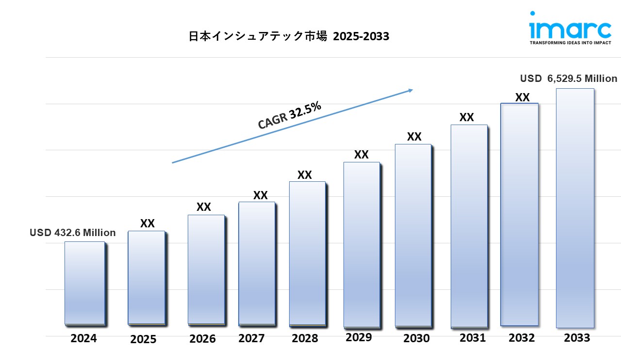 IMARCグループの最新レポートによると、日本のインシュアテック市場規模は2024年に4億3,260万米ドルに達しました。今後、IMARCグループは、2025年から2033年の間に32.5%の成長率(CAGR)を示し、2033年までに市場が65億2,950万米ドルに達すると予想しています。