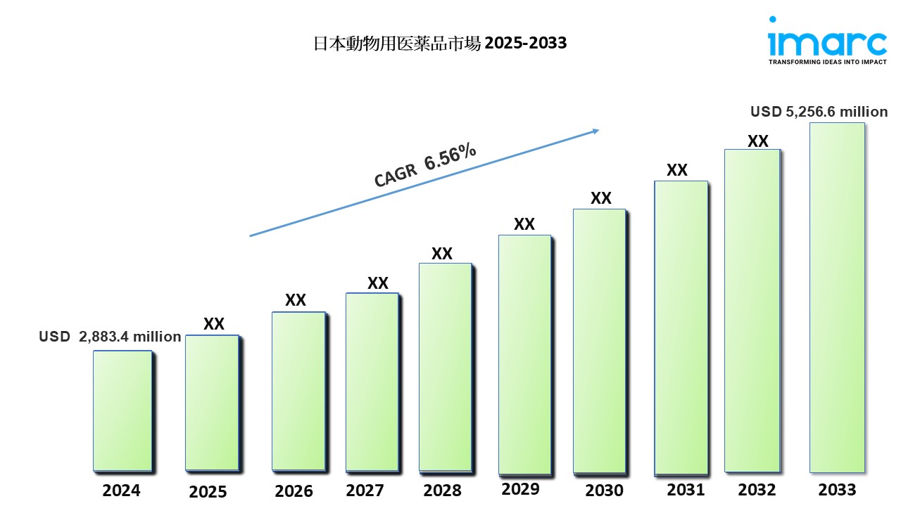 IMARCグループの最新レポートによると、日本のアニマルヘルス市場規模は2024年に28億8,340万米ドルに達しました。今後、IMARCグループは、2025年から2033年にかけてCAGR6.56%を示し、2033年までに市場が52億5,660万米ドルに達すると予想しています。