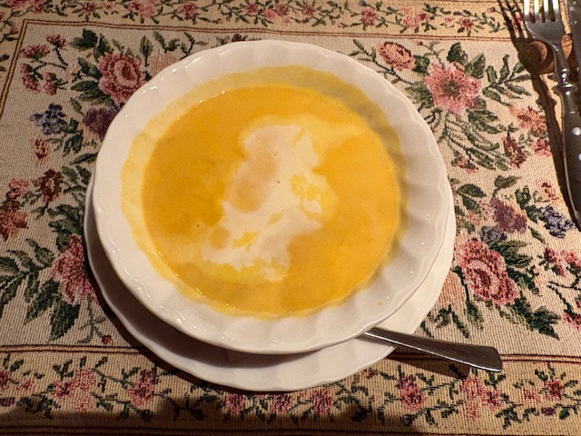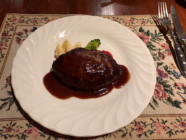 しかしながら、私は As usual(いつもと同じ)が好きなので、サーモンマリネ、パンプキンスープ、ハンバーグとライス。というメニューです。佐藤直子