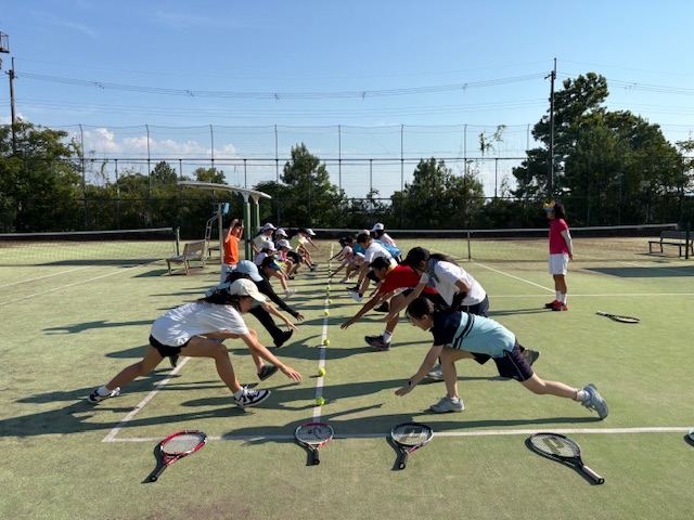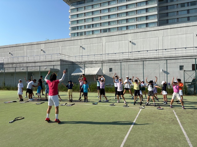 私は外コートの担当でしたが、全員首に氷を詰めたビニール袋をバンダナで巻き、希望する生徒には始めからシャワーをかけてビショビショにしてからレッスンを始めました。