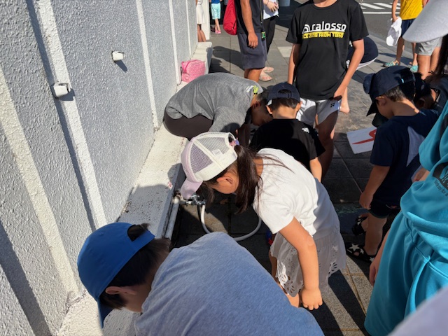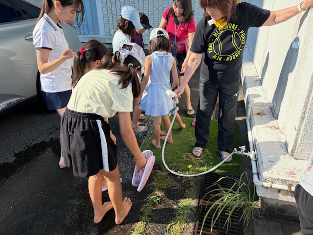 琵琶湖に入って砂がサンダルの間に入って痛い痛い。