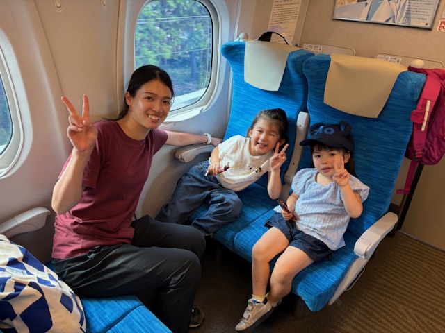 帰りののぞみは、きっとみんな疲れて寝るかなと思いきや、みんな元気にトランプをしたり、折り紙をしたら、お話ししたり…。