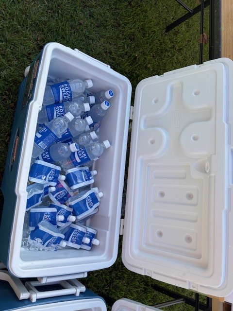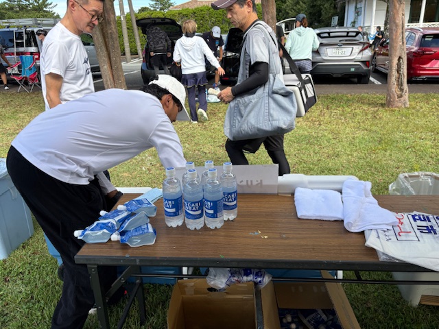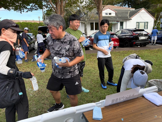 今日は結構暑く、参加者の皆様は、ポカリスエット、ポカリスエットゼリーで水分補給、栄養補給をして熱中症予防をしています。佐藤直子