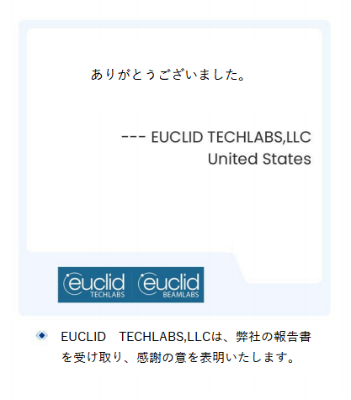「レポートをお送りいただきありがとうございます。内容を確認させていただき、不明な点がございましたら質問させていただきます。今後ともよろしくお願いいたします。」