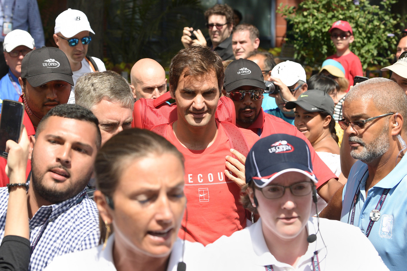 August 23, 2017 – Roger Federer walking toward the practice courts during the 2017 US Open. (USTA/Pete Staples)