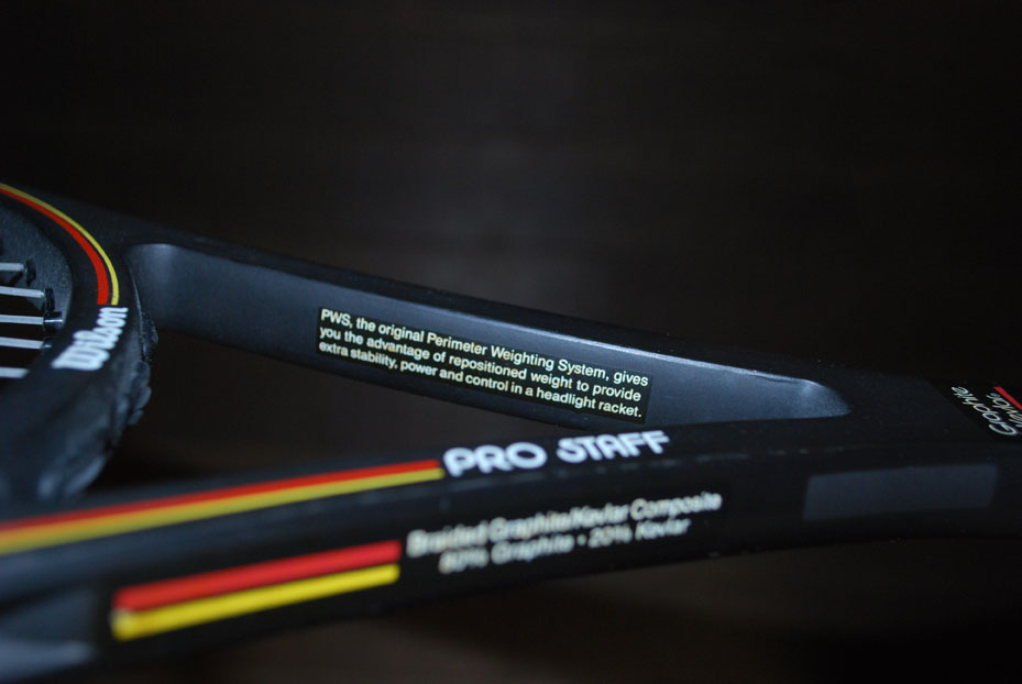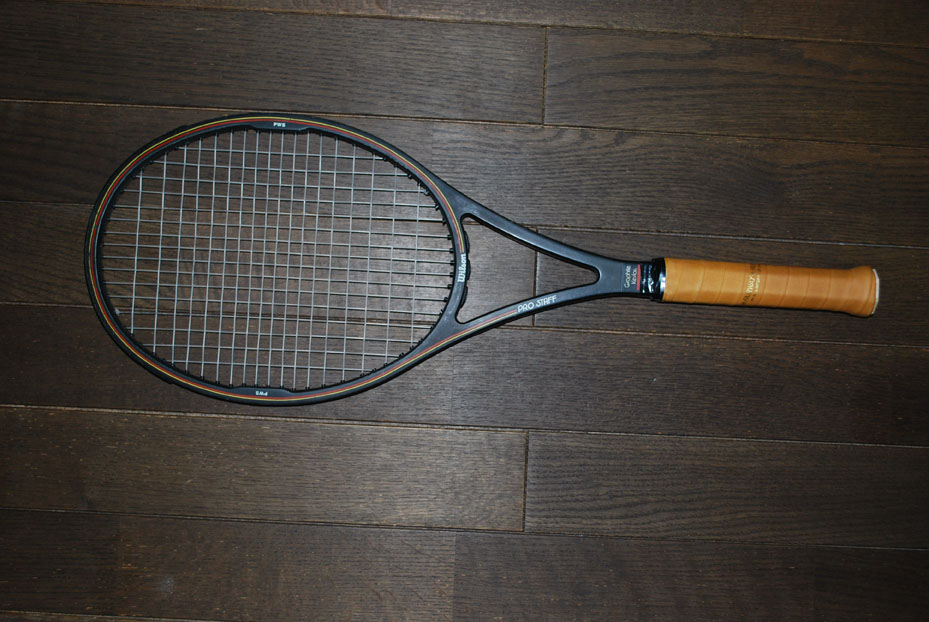 でもって私もようやく買えて使用しましたこのラケットはとても重く、現在のラケットとは性格が大きく違っています。今のラインナップでは「PRO STAFF90」がその血を受け継いでいると思います。