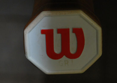 グリップの上のスロートの外側に黒い長方形のグリップサイズステッカー、反対側には「ウィルソン品質」ホログラム・ステッカー